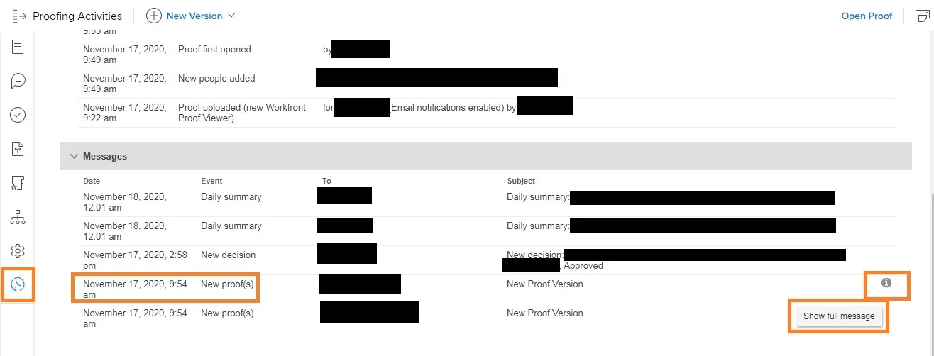 Is there a way proof creator can get a copy of the same email notification as the person who receives it?