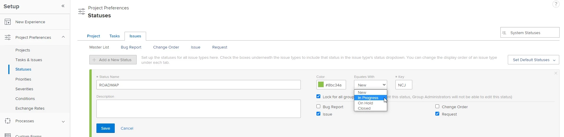 We have requests coming in that will end up on our 3 year roadmap. We want to convert those requests into holding projects for reporting/tracking purposes. We'd like for the request status to equal "ROADMAP" when the resolving project status is "ROADMAP".