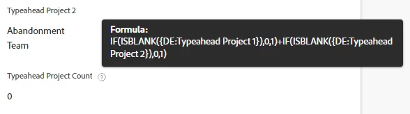 This item has stumped me. I created a calc field to do a simple sum of if a typeahead field has a project in it or not...a 0 if nothing, a 1 if something in it. It works correctly when editing the form and choosing something in the typeahead field. As soon as I save the form the calculated field reverts to 0 (instead of 2 as the image shows) even though the typeahead fields have something in it. Any thoughts on why this might be occurring?