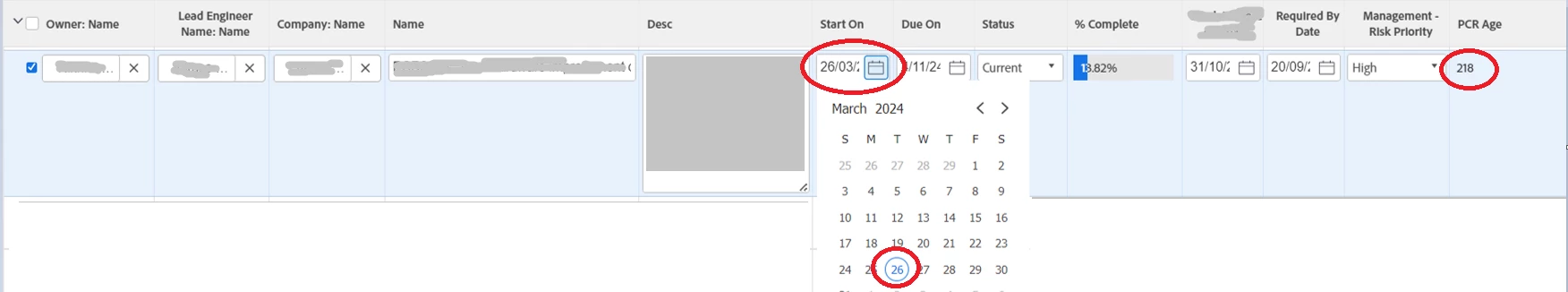 Some projects will display nothing at all, even though the start date is clearly listed earlier in the form.