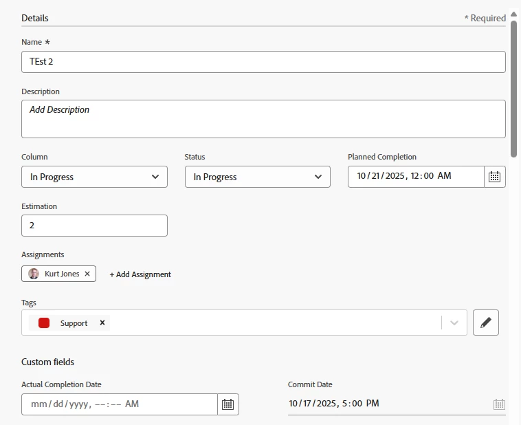 As Best Practice, we advise the Project Team members are told to suggest a "Commit Date" when assigned to a Task in a Project. In this way the Project Owner gets a notification to accept (timeline gets automatically updated) or reject (Project Owner takes mediating actions). However, "Commit Date" does not seem to be an editable field in the Cards.