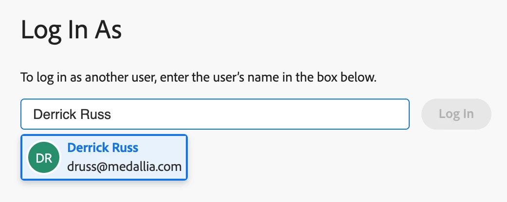 When using the Log In As feature, the prompt shows both the full name and email address of the users. However, it doesn't appear to search on the email address. Only the first name is matched. In some cases, because the email is actually more unique, it would be really helpful to fuzzy match on BOTH the email and full name.