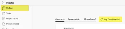 I just noticed there is no longer a Log Time button in the Updates section of a project. That button seems to have been replaced by the "Summarize contents" button even though my organization hasn't enabled or agreed to Adobe's AI functionality.
