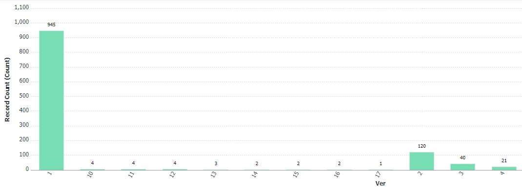 Example - it shows # of versions/rounds on X axis and how many proofs went that many rounds on Y axis. Helps find outliers (like why do we have any proofs going these double-digit rounds? and can click into them to find more).