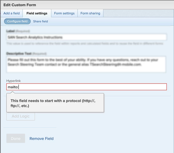 Make a clickable email link appear on a custom form as part of logic-displaying text.