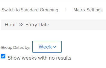 Fixed - for some reason having days with no data was messing up the matrix view. Resolved!