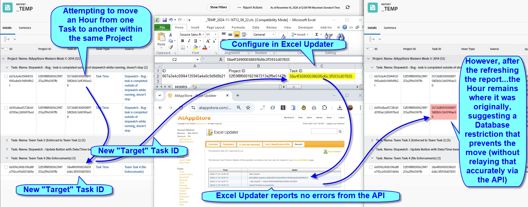 We have established "general support projects" for the team to log their time on major efforts throughout the year, such as ongoing web support. Recently, we've identified some duplication in these projects that we’re looking to consolidate. Is there a way to transfer efforts and hours (seamlessly) to a different task before deleting the duplicate?