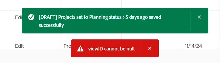 Description - the new bottom-center green and red notification popups do not disappear automatically and instead have to be manually closed via the "X" button on the notification. It would be great if these notifications could disappear after a specified amount of time automatically.