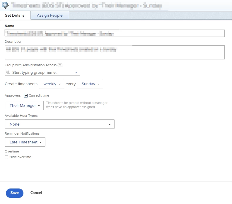 Timesheet profile: