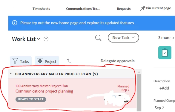 Description - I want to be able to open a project to see all tasks from the work list without first having to open a random task, scroll up, and then open the project.