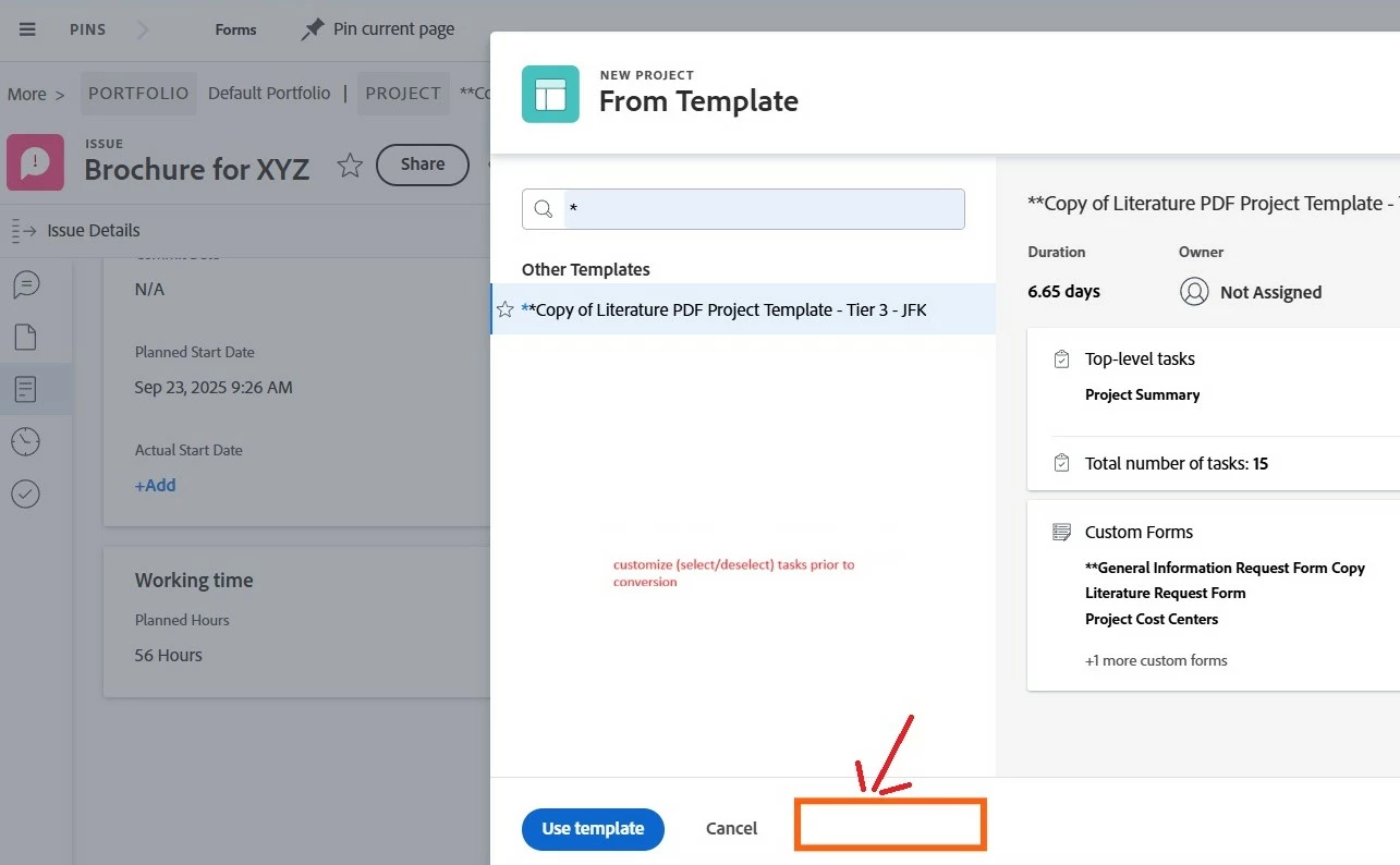 Description - Option to Customize Template when Converting Issue from a Template (and when creating a Project from a Template)