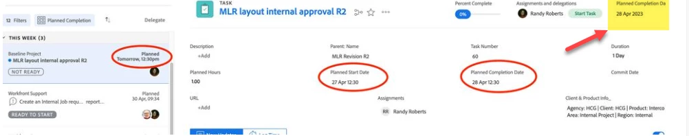 Current Behaviour - When adding Planned Completion Date to the Header in a layout template it only shows the Date. If an assignee who has task editing access clicks on the Planned Completion Date field in the Header, even to just view the time from the calendar popup window, it changes the task constraint to MUST FINISH ON and breaks the waterfall timeline.