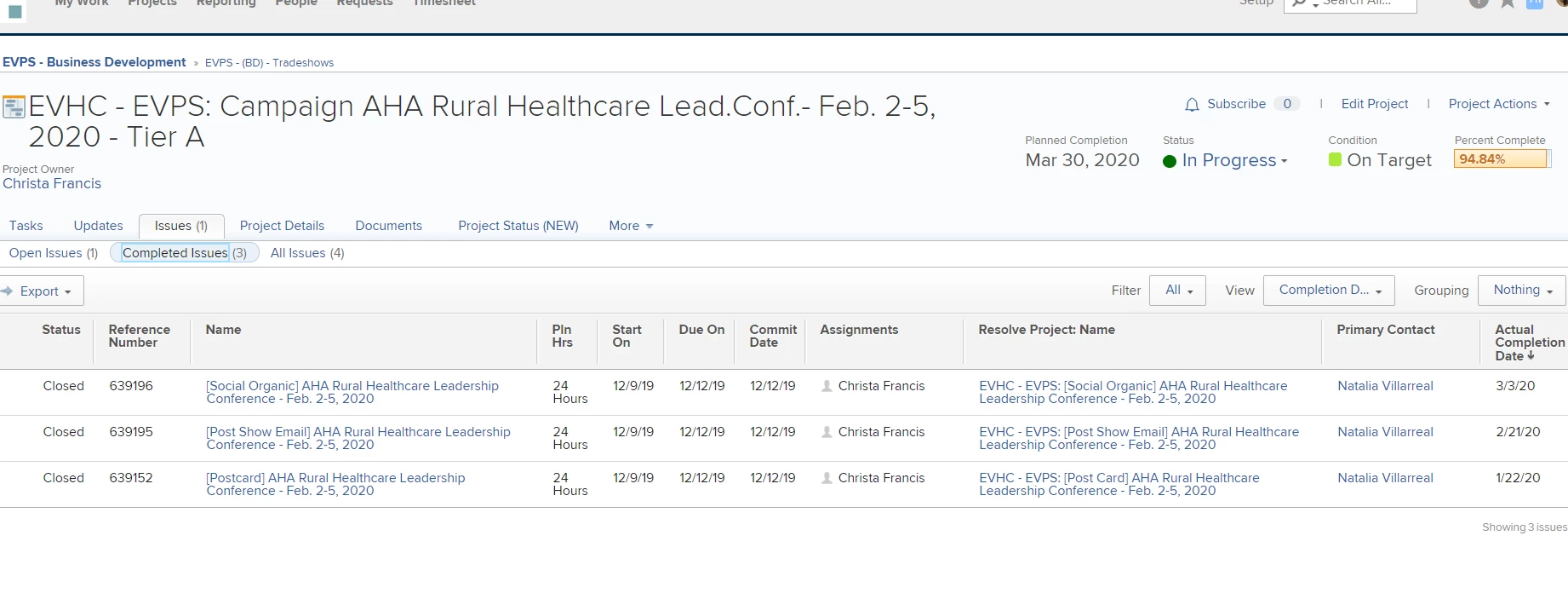 When the creative concepts are approved by leadership, the channel owners submit their individual requests (email, direct mail, store signage, digital, etc.) and PM links the projects to the Portfolio.