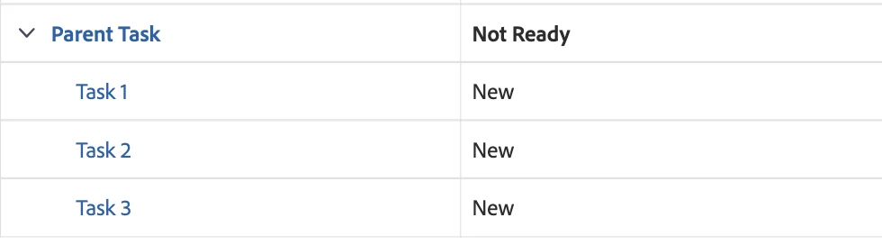 Does anyone have any alternative suggestions that would work? It's not a huge issue with the Parent Tasks staying as 'Not Ready', but isn't a true reflection of status, if all the tasks underneath are new and scheduled with staff.