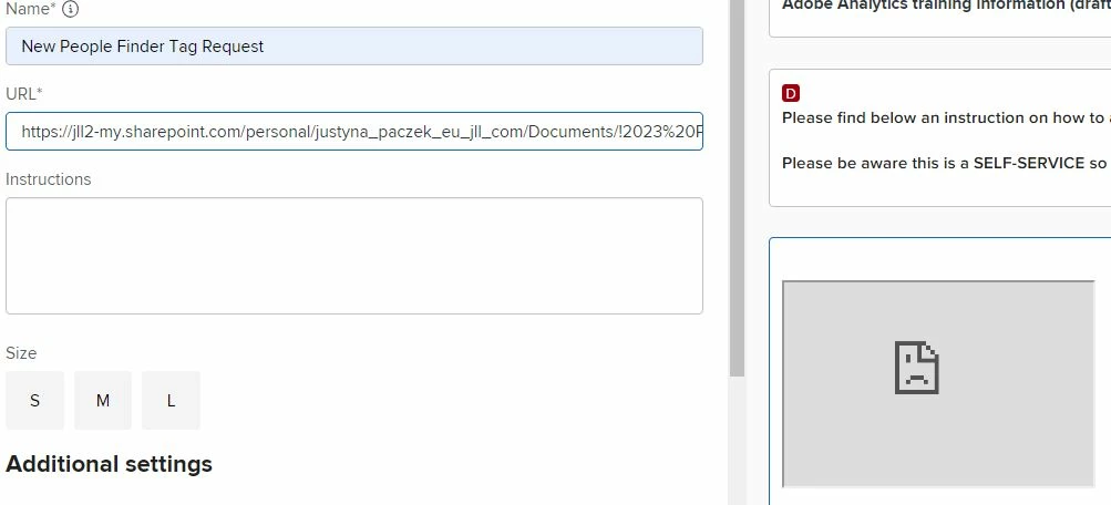 Can anyone help me on how to use a pdf link in a custom form so that it actually works? I have tries Sharepoint and OneDrive of my company, OneDrive is for sure connected and still when I use the link it shows me a grey area with a broken link symbol. I also tried uploading to the Documents section in the Workfront menu but not sure how to get a link from there...any tips?