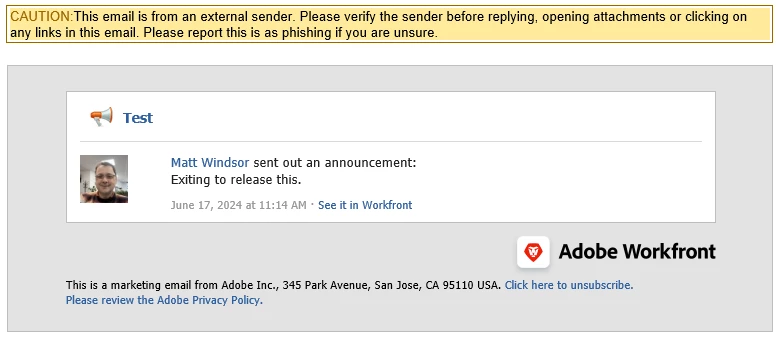 Is it possible to amend the formats when sending communications from the Announcements Area? Ideally, I'd like to add a Logo and/or background, and certainly remove the wording around it being a marketing email from Adobe Inc and how to unsubscribe. I want it to look like it's an internal message.