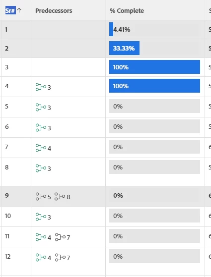 Predecessors relationships showing Green and Black