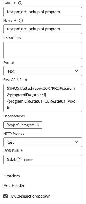 - I need a dynamically-populated multi-select dropdown in the issue custom form of the project pulling in all active projects in the program the issue's project is in. So if I have issue 1 in program A, I need to be able to select any other active project within program A in this program (so the other active project names need to populate in this multi-select dropdown). Same for issue 2 in a separate program B (all in same portfolio though), and so on. I know this isn't natively possible in custom forms, but is there any way with Fusion and/or a lookup field? There would only be up to probably 20 other projects in the program at any time that it would need to pull into a dropdown in the issue custom form, we're not talking 50+.