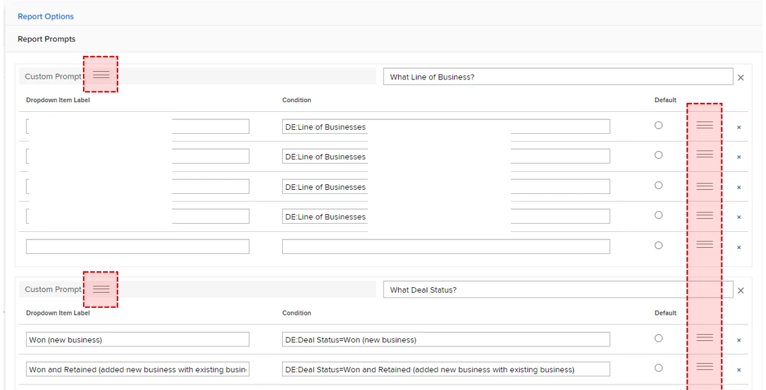 Idea 2: Allowing sorting of custom prompts and fields. Highlighted items below: