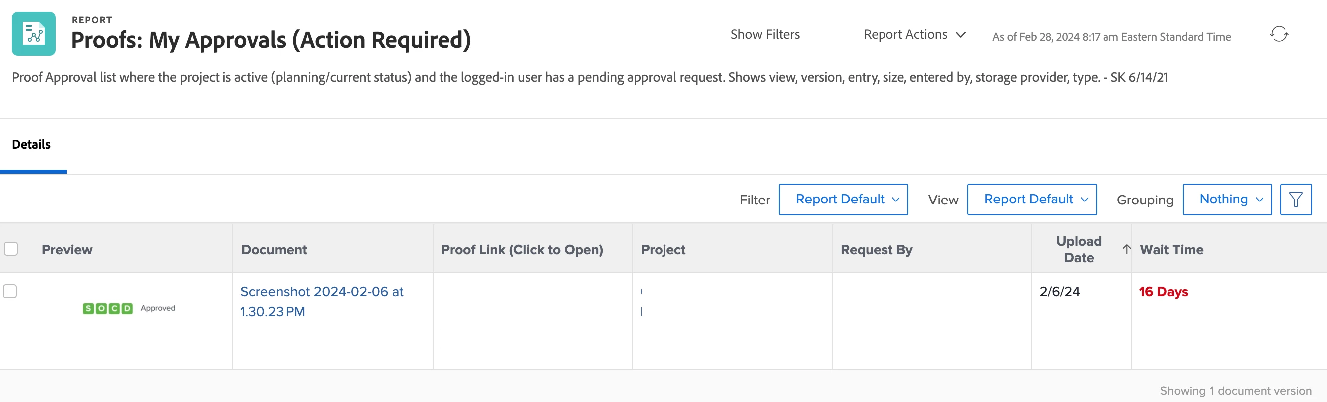 Need a report that shows a proof name, the approvers on each stage, and the time it took for them to approve the proof. I've tried writing a couple of different document version reports, but I can't seem to find a way to capture the time it took to approve. Any suggestions?
