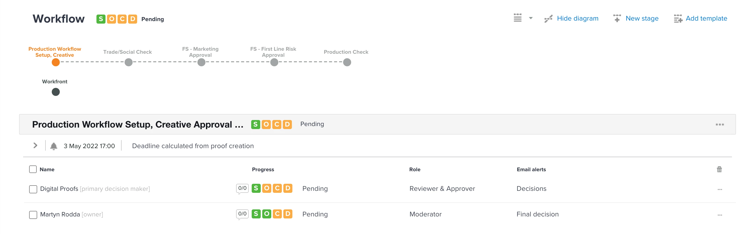 For the proof roles Author, Moderator, Reviewer & Approver, and Approver, Workfront expects the person to make a decision.