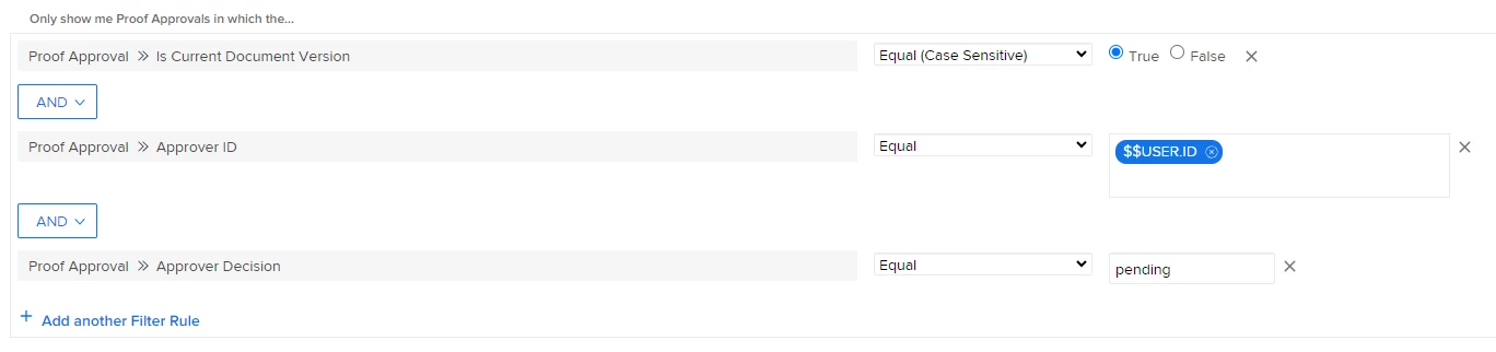 Hello! We have a My Pending Proof Approval Report, which is a simple report (filters shown below) that is pulling in proofs that failed to generate. Anyone have any tips for excluding the ones that failed to generate? We can always delete them, but we restrict user deletion permissions and don't want to have the Admins doing it all the time.