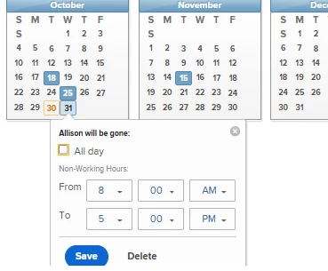 Currently, the PTO calendar works on hourly increments, however, the delegation option works in full-day increments only.