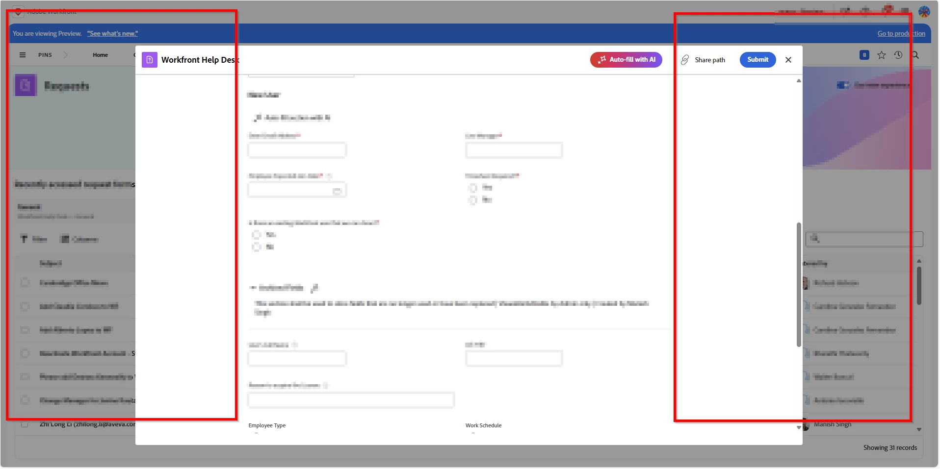 So this new toggle for the request/issue UX is another change that Workfront is forcing administrators to accept. The problem is that we can' t toggle that off for our users or ensure that our users don't even get that option. The UX is very disconnected to our overall user experience as the page does not look like what our other pages look like. What's the use of the layout template? The new UX is not controlled by the layout templates. They don't keep the available filters on the original page or layout we have so the new experience look so messy and then my users are lost on how to navigate the UX.
