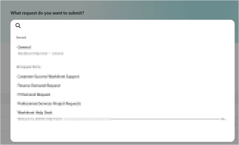 New request experience can be improved. Large font, more space between two queue options. It would be better if "What request do you want to submit" can be replaced with a button. The box seems more like a search rather than a new request button.
