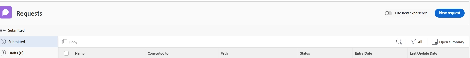 Has anyone been successful in obtaining a list of users who have enabled the New Requesting Experience from Adobe? Our support person told me no such list exists but wondering if anyone else has heard differently.