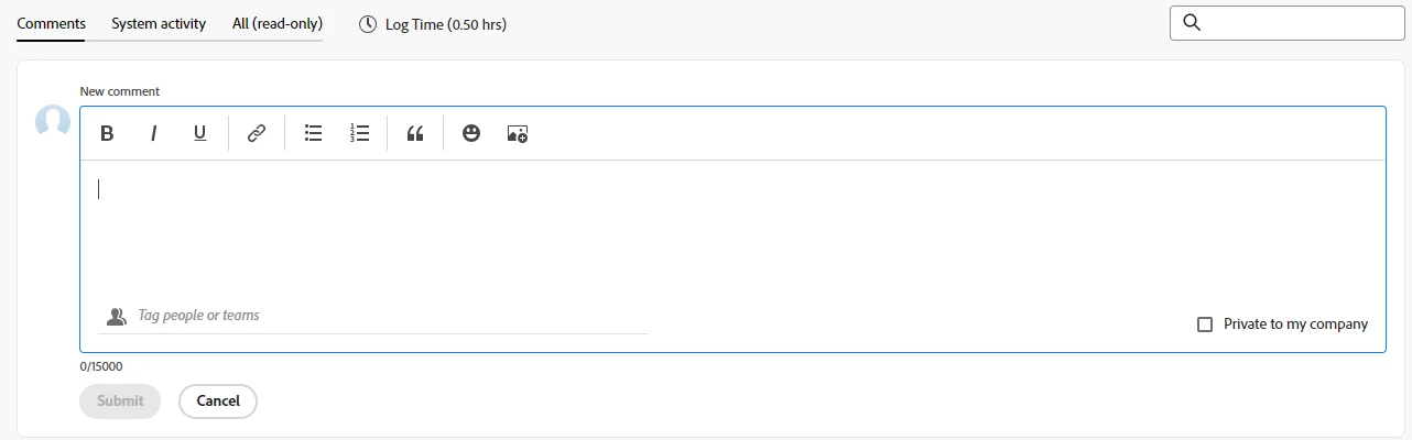 Why is this feature important to you - Our team uses "private to my company" frequently when communicating in Workfront. Having this capability in this view is was an easier and quicker user experience.