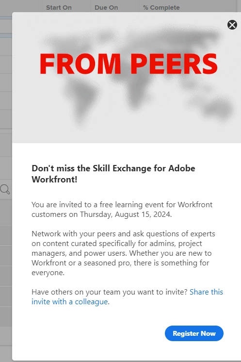 This event is tailored for System Admins, Group Admins, Project Managers, and power users, with a keynote presentation from Richard Whitehead, Director of Workfront Product Marketing.
