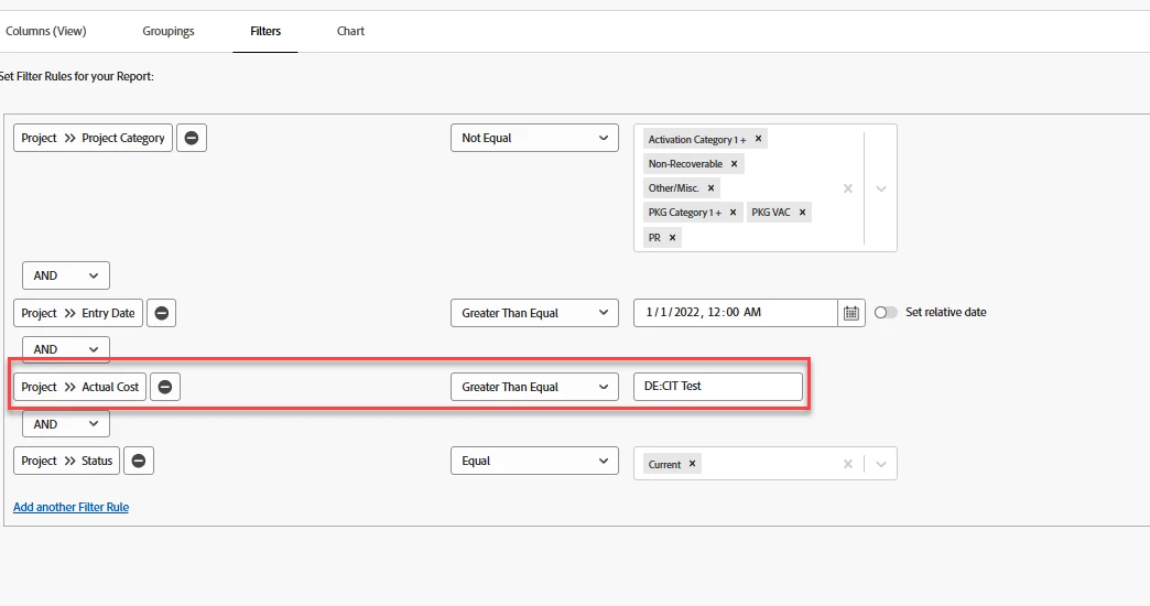Report filter to compare two currency fields