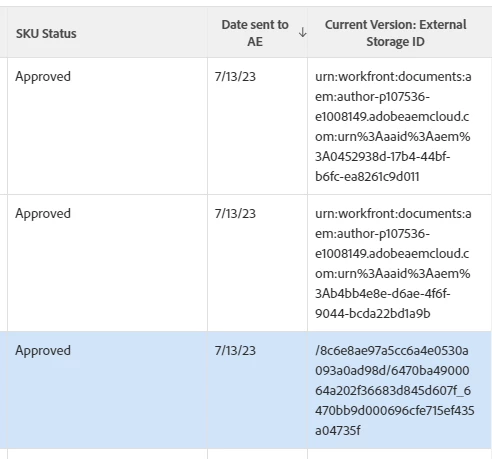 We just went live with Assets Essentials a few weeks ago and are trying to figure out reports in Workfront that will show all documents that haven't been sent to AE. I have found the External Storage ID starts with "urn.workfront:documents:aem:author" if it has been sent to AE while the others are the guid for the document and document version. I am not able to use the contains option in the filters so I haven't been able to figure out how to use that in reporting to show documents that haven't been sent to AE. Since we can't filter by metadata or export metadata in AE, this is the only option I could think of.