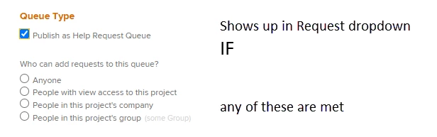 - Every project is a queue. This filters out projects where the "Publish as help queue" is unchecked