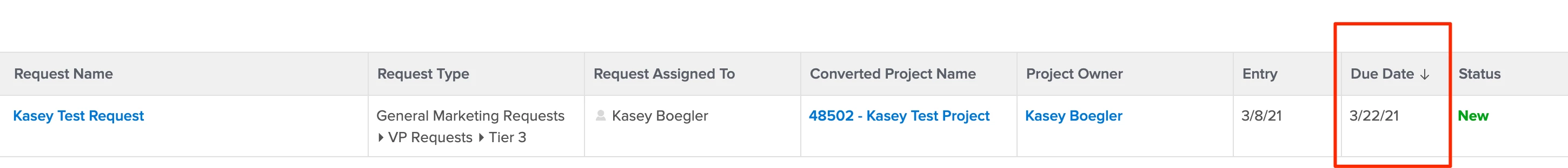 We have a "My Requests" report (see screenshot) that shows the original request, the converted project, status, etc. The status automatically feeds off of the Project status, however the Planned Completion Date (Due Date in our case) is set to the Request which is always different. If I switch it to the Project Planned Completion Date, it is not accurate. How do we create a Due Date column that pulls the Converted Project's Planned Completion Date?