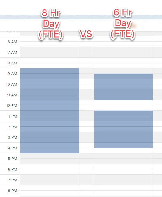 Update schedule from 8 to 6 hour days: