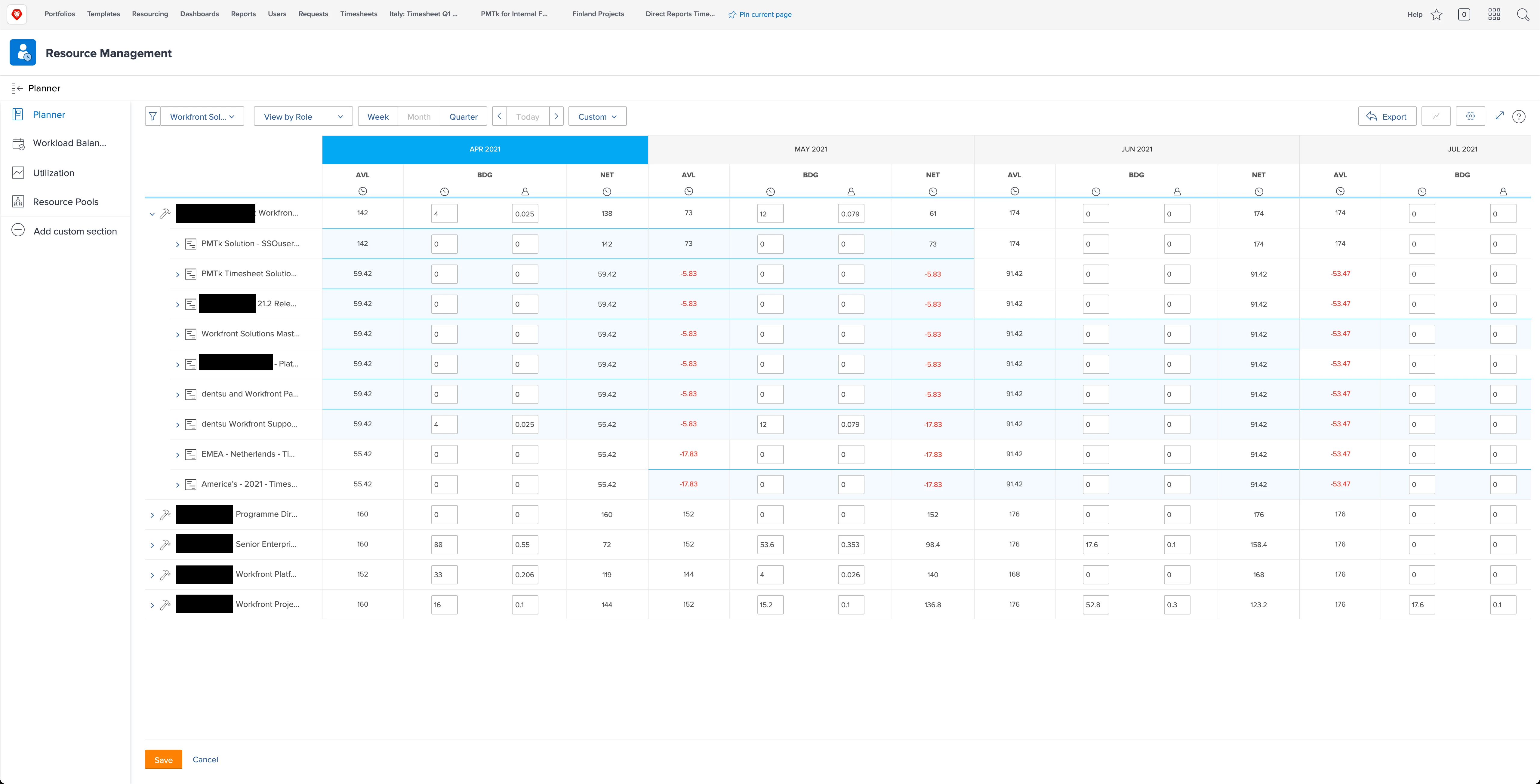 Innovative idea 1; a lot of companies split forecasting by confirmed / unconfirmed projects. It would be valuable to assess building this option into the planner. Value: able to assess capacity load in the scenario your unconfirmed pipeline shifts to confirmed at the estimated start date. Are we able to manage the unconfirmed pipeline in that scenario. If not, I need to be ready to hire external consultants for example.