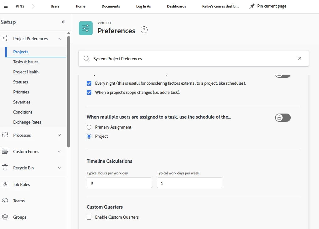 The system is setup for 40 hours, 5 days, and 8 hour days. I've tried creating a 2nd schedule to apply to specific projects for cases like this but it's not working the way I hoped.