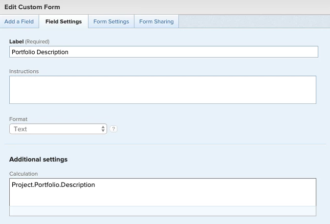 Type Project.Portfolio.Description in the Calculation text box.