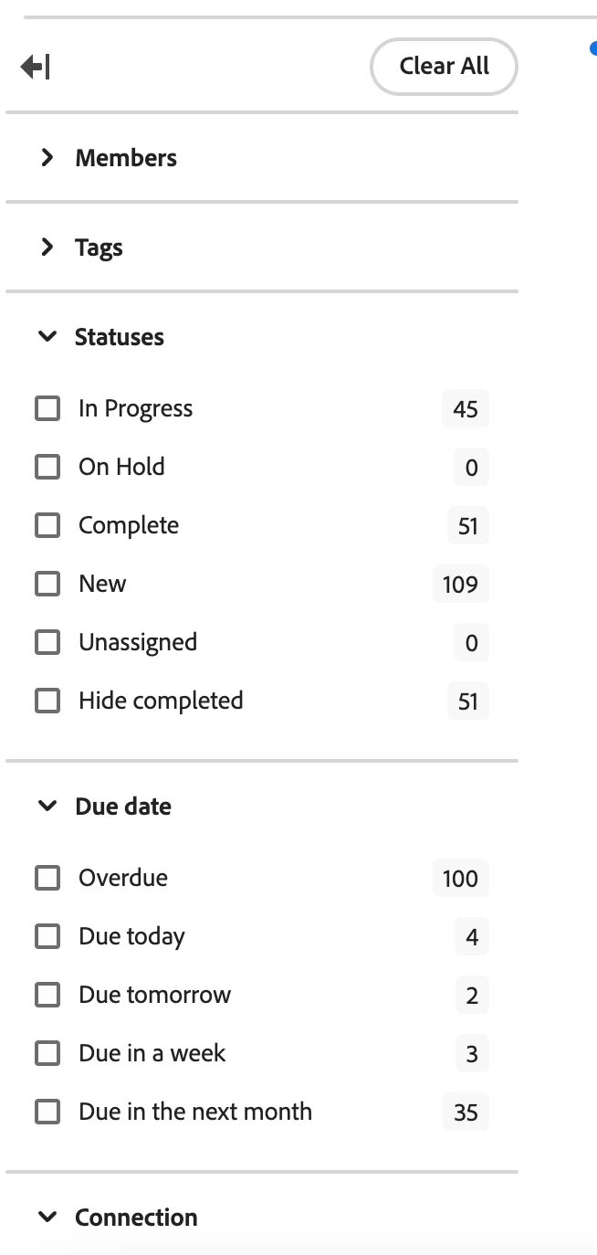 The current function of the Workfront Boards filters seem to be set up on an OR statement meaning if multiple filter options are selected the filter will pull [this selection] OR [that selection], and not [this selection] AND [that selection]. For example, we have a member of our team attempting to use the Boards column filter to see any tasks that are aligned to one particular project AND assigned to one particular user, but for some reason it is only pulling tasks assigned to the one particular user.