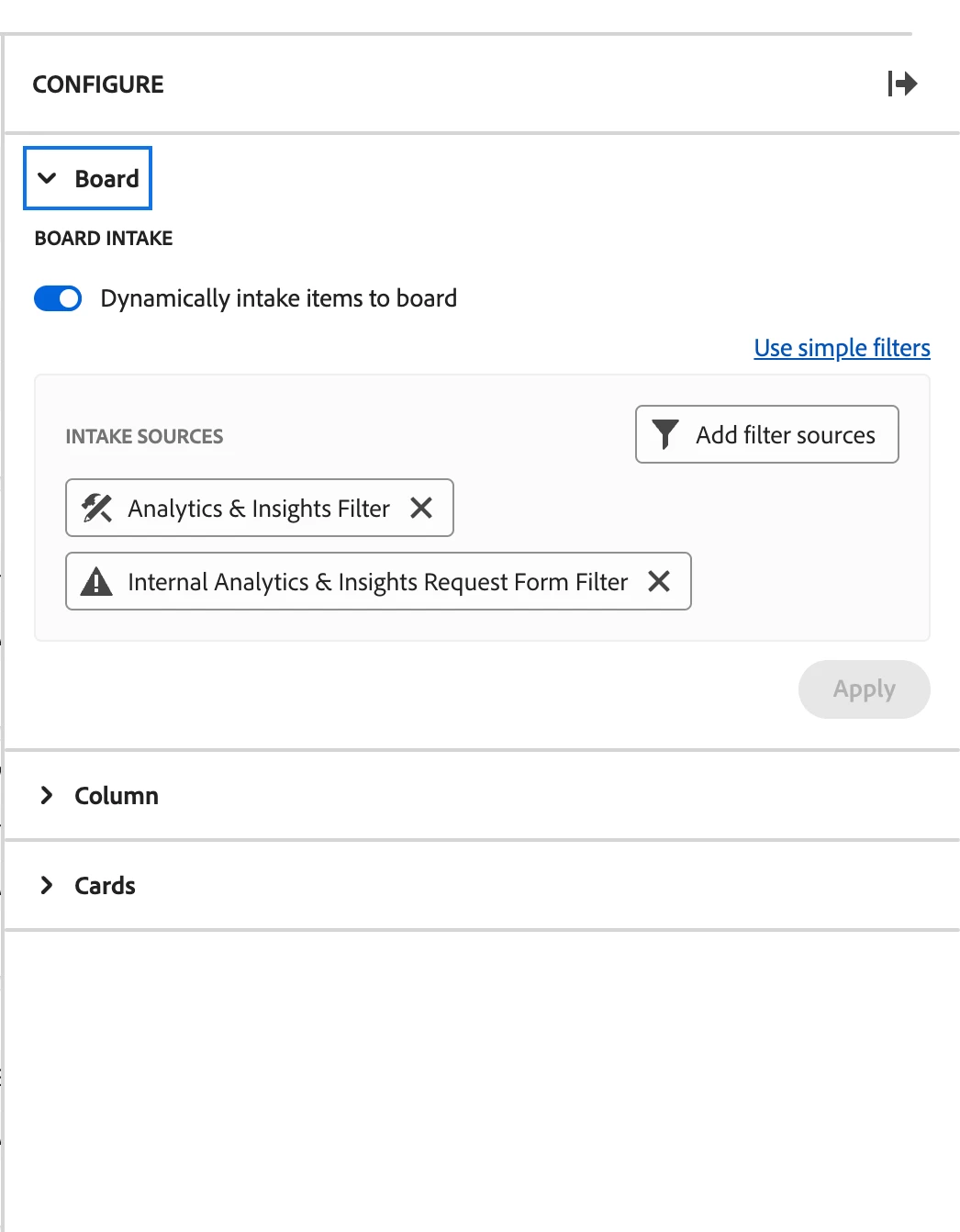 Stackable Workfront Boards Column Filters