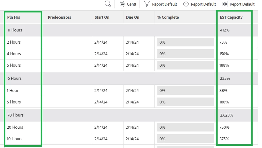 Sum all Planned Hours and convert to %