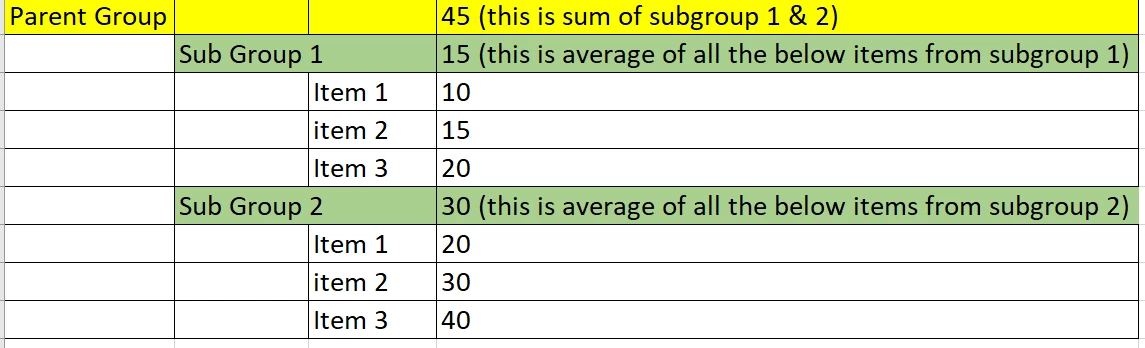 Hi- Is there a way to summarize a column in report with sum and average both? Average value at sub-grouping (child) level and then sum of all sub-grouping level at group (parent) level. Basically, average of all the numbers which are under subgroup and then sum of all the subgroup numbers which are under group at group level.