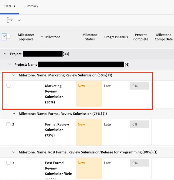 The milestone view does not work for the desired finished report, a milestone report doesn't work due to filtering constraints, and our milestones are not all associated with the same task names across our projects.