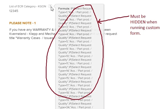 Text Code in Calculated Field Should Be Hidden When using Custom Form