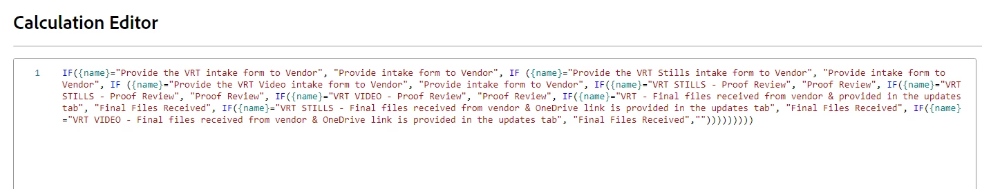 I have a task report in Workfront that I want to group by task name, but I only want 3 groups named Provide intake form to Vendor, Proof Review, and Final files received. I have a variety of task names and I want them to be combined though to fit into the 3 main groups. For the Provide intake forms to Vendor group, it should include any task with the name Provide the VRT intake form to Vendor or Provide the VRT Stills intake form to Vendor or Provide the VRT Video intake form to Vendor. For the Proof Review group, it should include any task with the name VRT - Proof Review or VRT STILLS - Proof Review or VRT VIDEO - Proof Review. for the Final files received group, it should include any tasks with the name VRT - Final files received from vendor & provided in the updates tab or VRT STILLS - Final files received from vendor & OneDrive link is provided in the updates tab or VRT VIDEO - Final files received from vendor & OneDrive link is provided in the updates tab. Can you create this in group text mode?