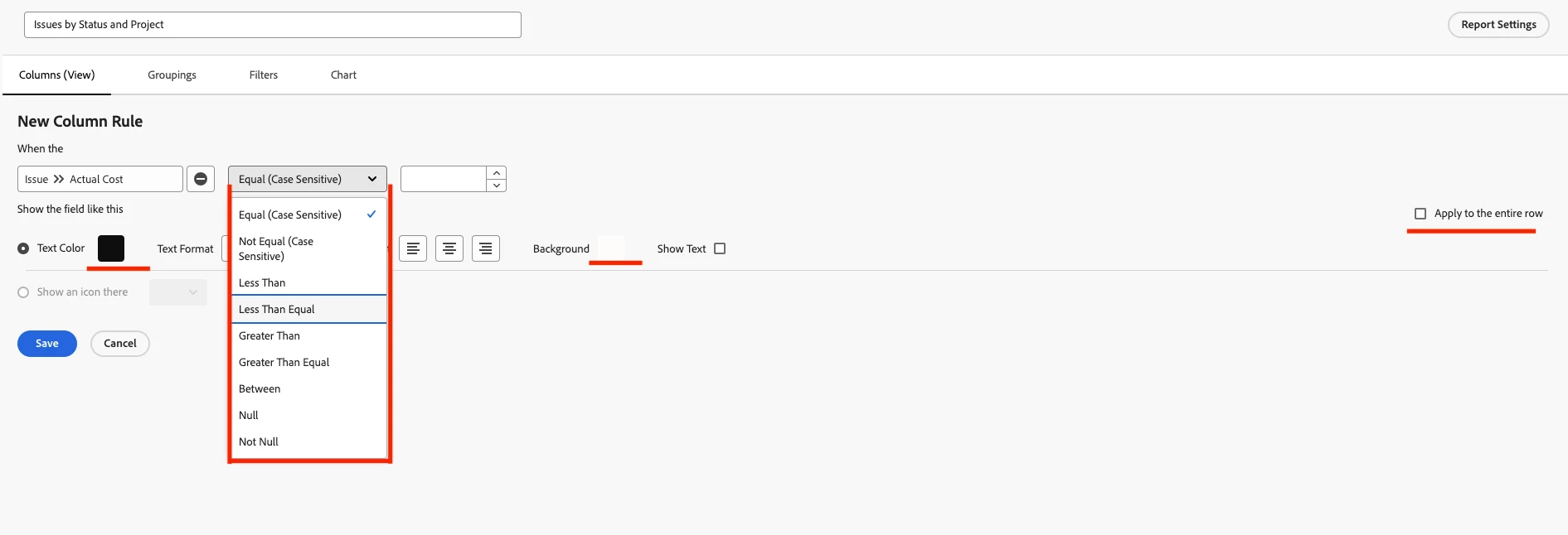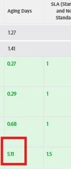 scenario: if Aging Days value is greater than SLA Value, color it red.