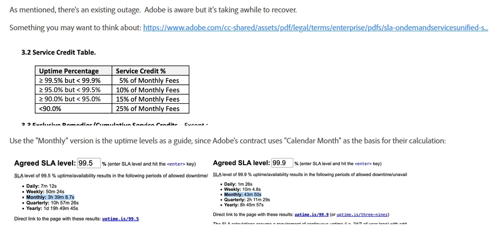 With another system outage/major access problems this morning, I'm going to start the conversation with our procurement team about how to get $$ back from Adobe given all the downtime and lost productivity that these problems have caused teams at my organization. I've been a system admin for Workfront for close to five years, and have never experienced as much inconsistency with access than I have in the last 6 months.