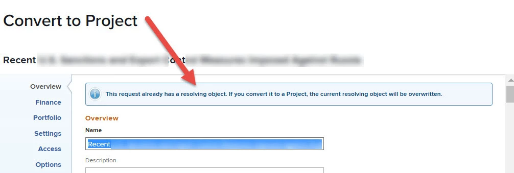 It would be helpful if the warnings stood out more. For example, the alert that a duplicate "resolving object" is about to created doesn't get noticed because the font and colors blend in. If the warning stood out more it would stop duplicate projects from being created.